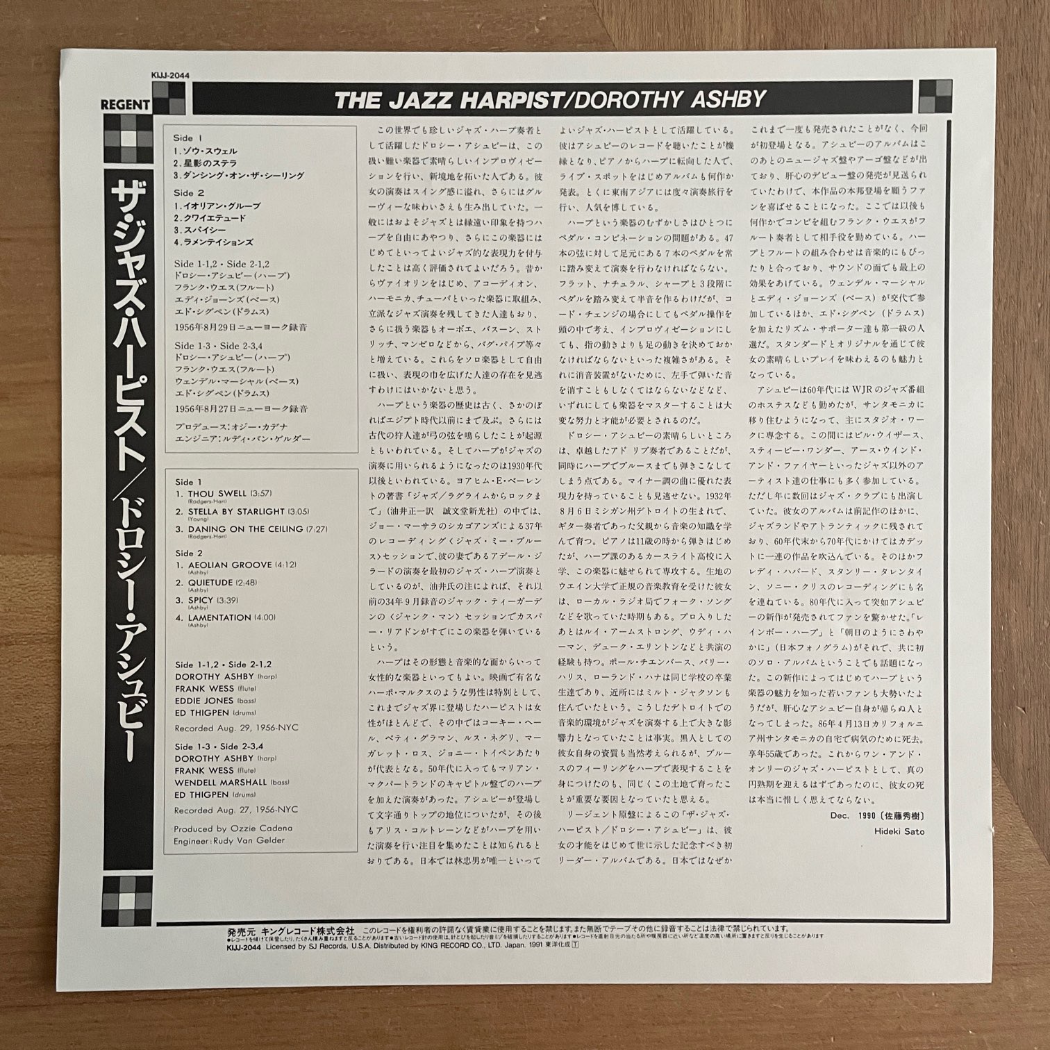 DOROTHY ASHBY / THE JAZZ HARPIST DOROTHY ASHBY / THE JAZZ HARPIST / KIJJ-2044 JP REISSUE 91年regentからリリースされた日本・再発盤。ジャズ界では珍しいハープ奏者のドロシー・アシュビーが56年にFRANK WESS,WENDELL MARSHALL,EDDIE JONES,ED THIGPENと作り上げた室内楽ジャズ。 盤質:A- ジャケット:表・縁・角に軽度スレ。帯縁にスレ・折れジワ・チップ破れあり。ライナーあり。 試聴 THOU SWELL https://recordshopgg.com/wp-content/uploads/2026/03/DOROTHY-ASHBY1.m4a QUIETUDE https://recordshopgg.com/wp-content/uploads/2026/03/DOROTHY-ASHBY-2.m4a (商品コード: 5674) 在庫状態 : 在庫有り ¥3,800(税込) 数量