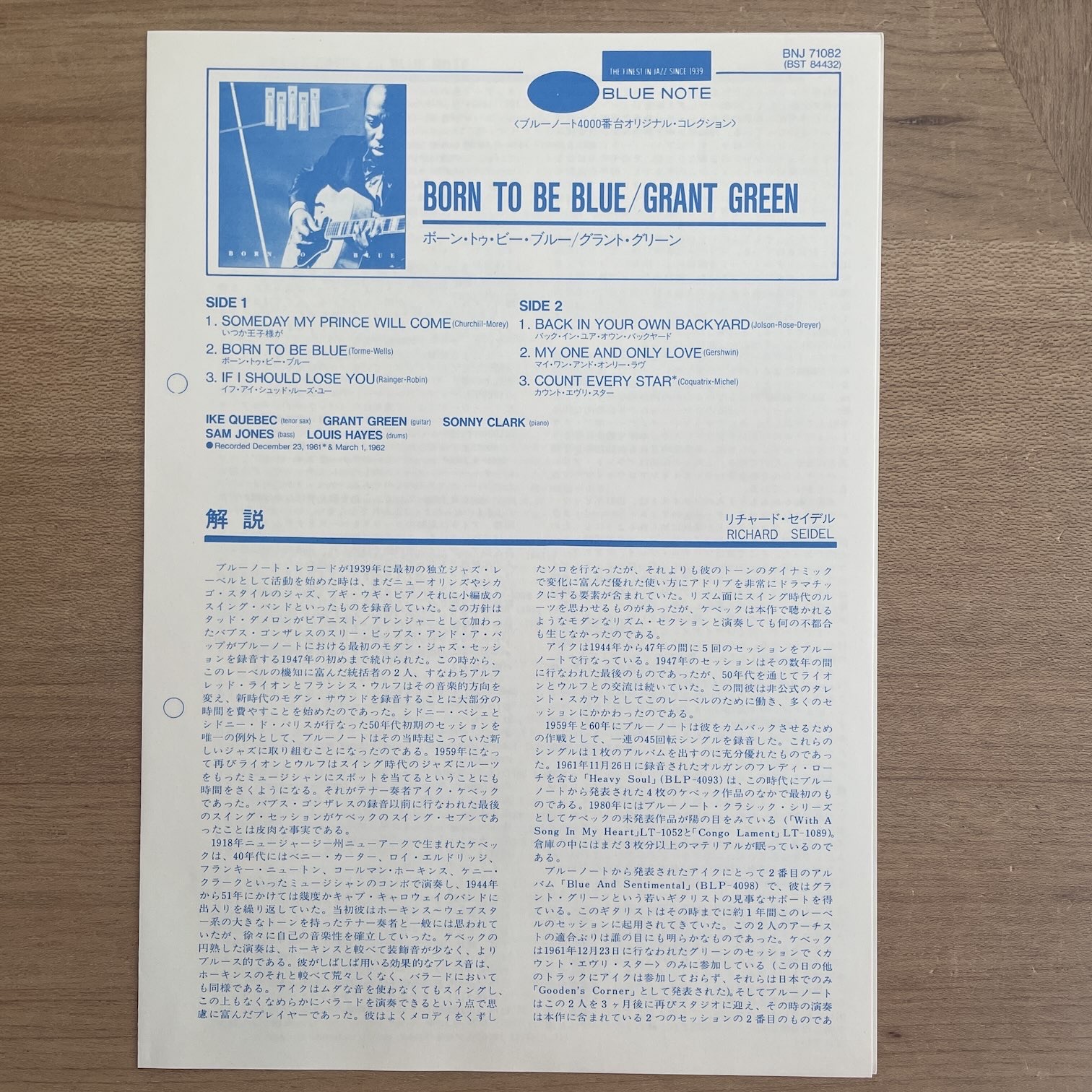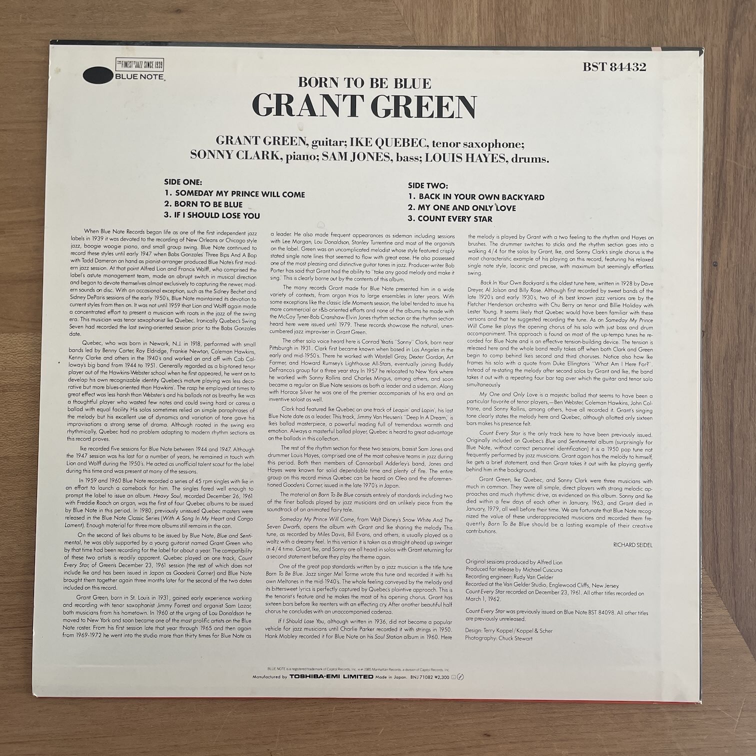 GRANT GREEN / BORN TO BE BLUE GRANT GREEN / BORN TO BE BLUE / BNJ71082 JP ORIG. 85年blue noteからリリースされた日本・初回盤。アメリカのジャズ・ギタリストで人気のグラント・グリーンの未発表音源。61年、62年に録音したものでIKE QUEBEC,SONNYCLARK,SAM JONES,LOUIS HAYESとのクインテット編成。 盤質:A- ジャケット:裏に軽度しみ。表ハイプステッカーが貼り付けあり。冊子あり。 試聴 SOMEDAY MY PRINCE WILL COME https://recordshopgg.com/wp-content/uploads/2026/03/GRANT-GREEN1.m4a MY ONE AND ONLY LOVE https://recordshopgg.com/wp-content/uploads/2026/03/GRANT-GREEN2.m4a (商品コード: 5684) 在庫状態 : 在庫有り ¥3,800(税込) 数量