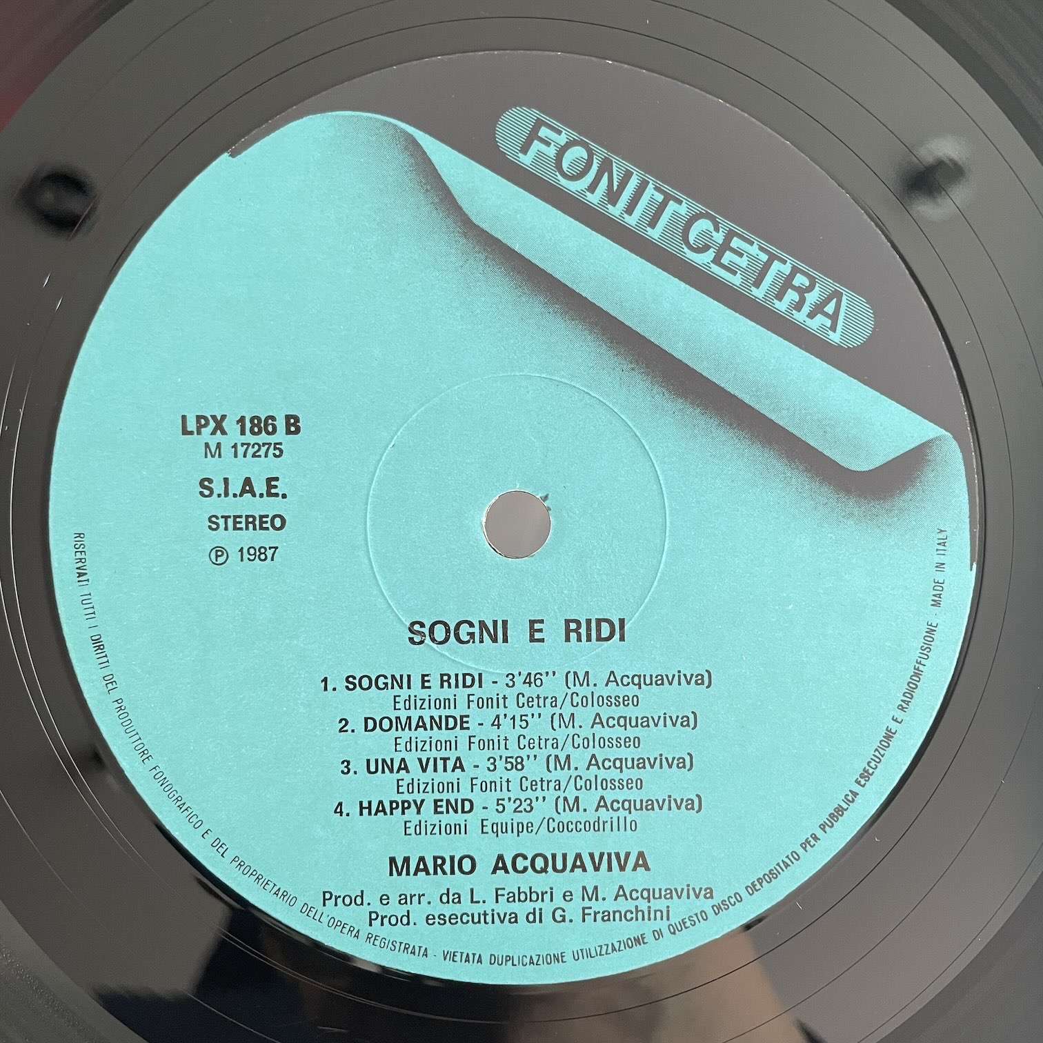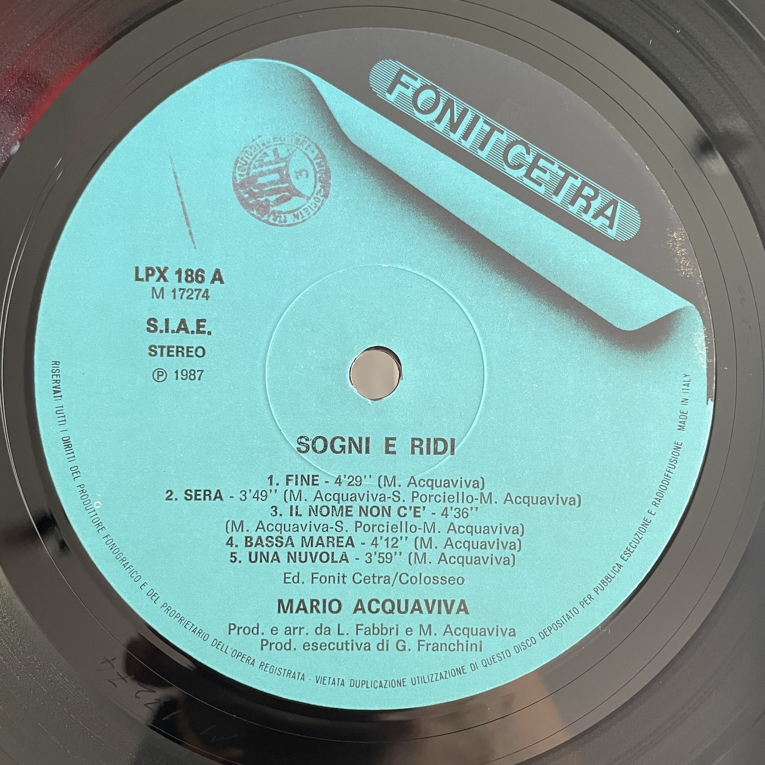 MARIO ACQUAVIVA / SOGNI E RIDI MARIO ACQUAVIVA / SOGNI E RIDI / LPX186 ITALY ORIG. 87年fonit cetraからリリースされたイタリア・オリジナル。イタリアのAORミュージシャンのラストアルバムになる2nd。このサウンドで少しかすれた声でイタリア語で歌われたら、アルゼンチン(スペイン語にイタリア訛り)のスピネッタのように聞こえません? 盤質:A- ジャケット:シュリンク付きで概ね綺麗です。インナースリーブあり。 試聴 SERA https://recordshopgg.com/wp-content/uploads/2026/03/STEFANO-PIERONI2.m4a SOGNI E RIDI https://recordshopgg.com/wp-content/uploads/2026/03/MARIO-ACQUAVIVA-3.m4a (商品コード: 5692) 在庫状態 : 在庫有り ¥3,800(税込) 数量