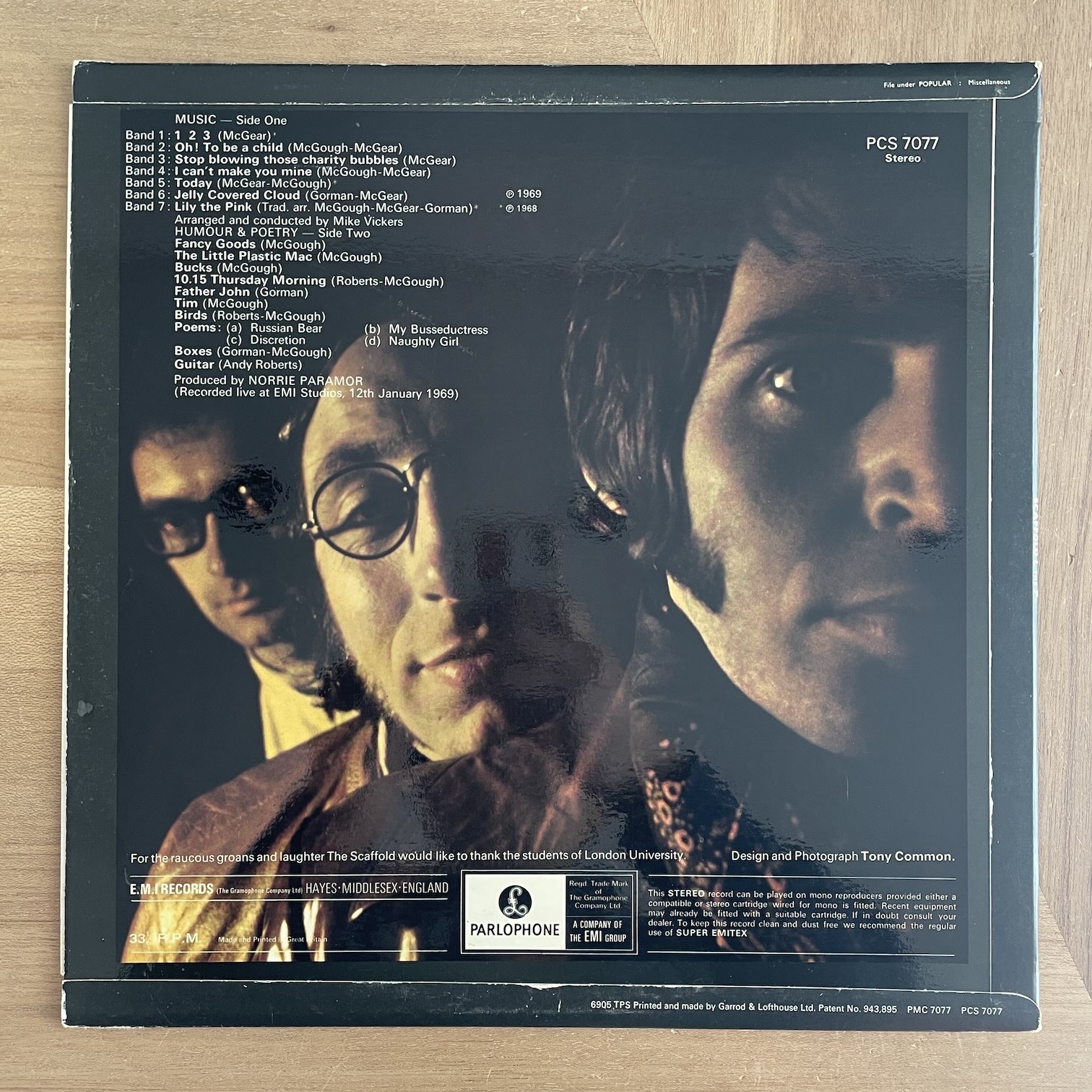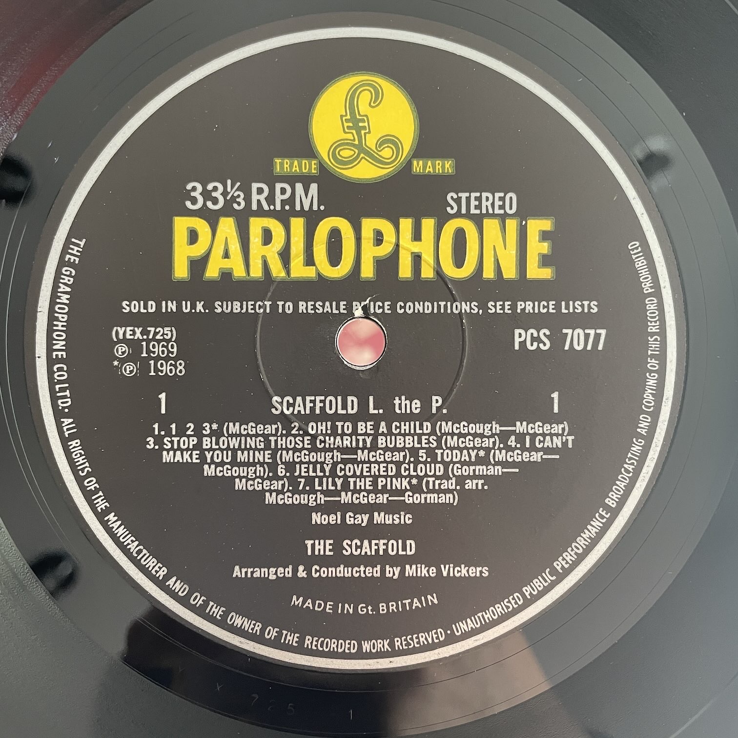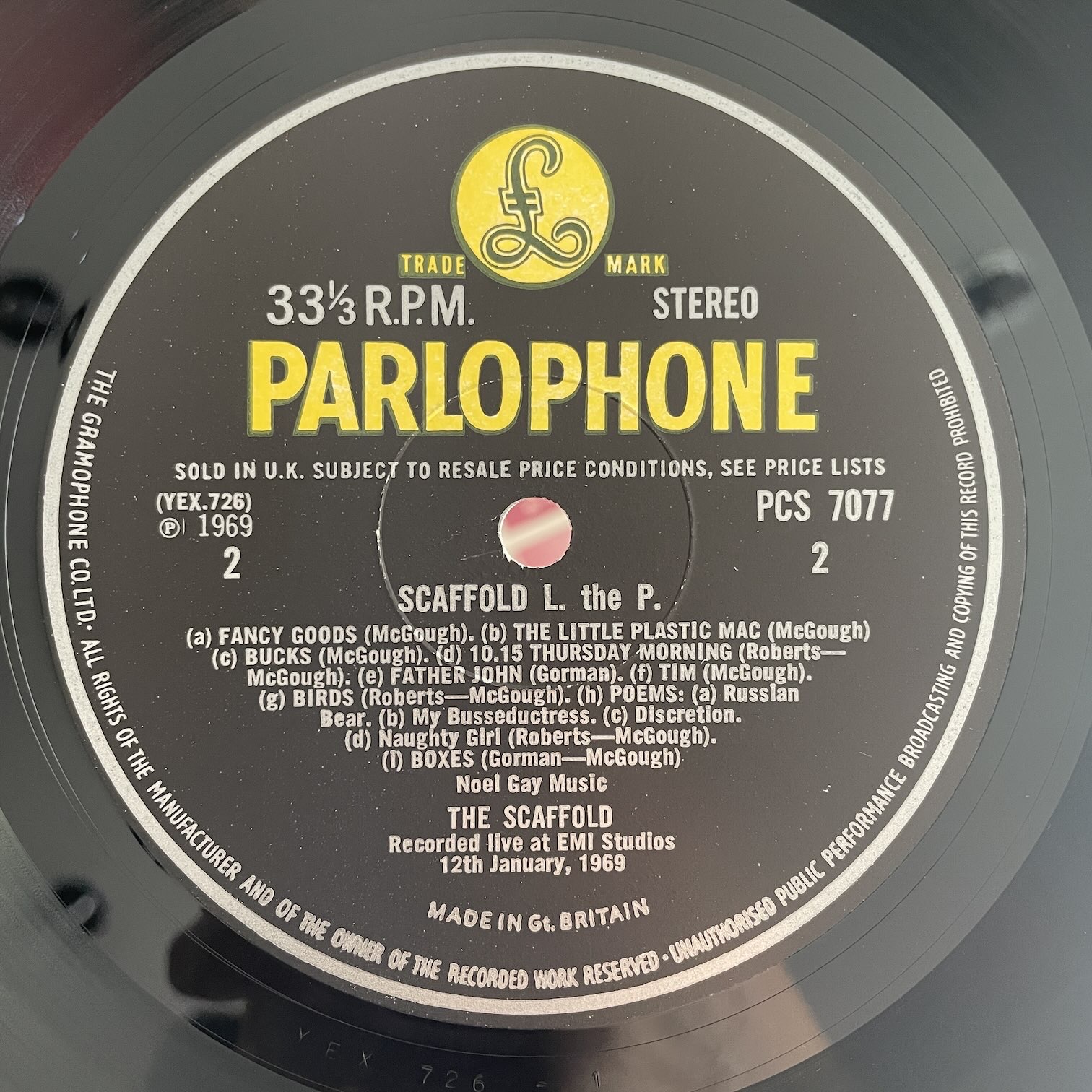 SCAFFOLD / L THE P SCAFFOLD / L THE P / PCS7077 UK ORIG. 69年parlophoneからリリースされたイギリス・オリジナル。PAUL McCARTNEYの実弟のMIKE McGEAR在籍バンドの3rdアルバム。少し変わっていて、A面は7曲ポップな楽曲ですが、B面はギターが時々入る程度の客前での3人での漫談?で笑い声が入るようなものになってます。 盤質:B+ ジャケット:表マット・裏コーティングジャケ、角潰れ、縁スレ。 試聴 1,2,3 https://recordshopgg.com/wp-content/uploads/2026/03/McCartney1.m4a JELLY COVERED CLOUD https://recordshopgg.com/wp-content/uploads/2026/03/McCartney2.m4a (商品コード: 5698) 在庫状態 : 在庫有り ¥2,800(税込) 数量