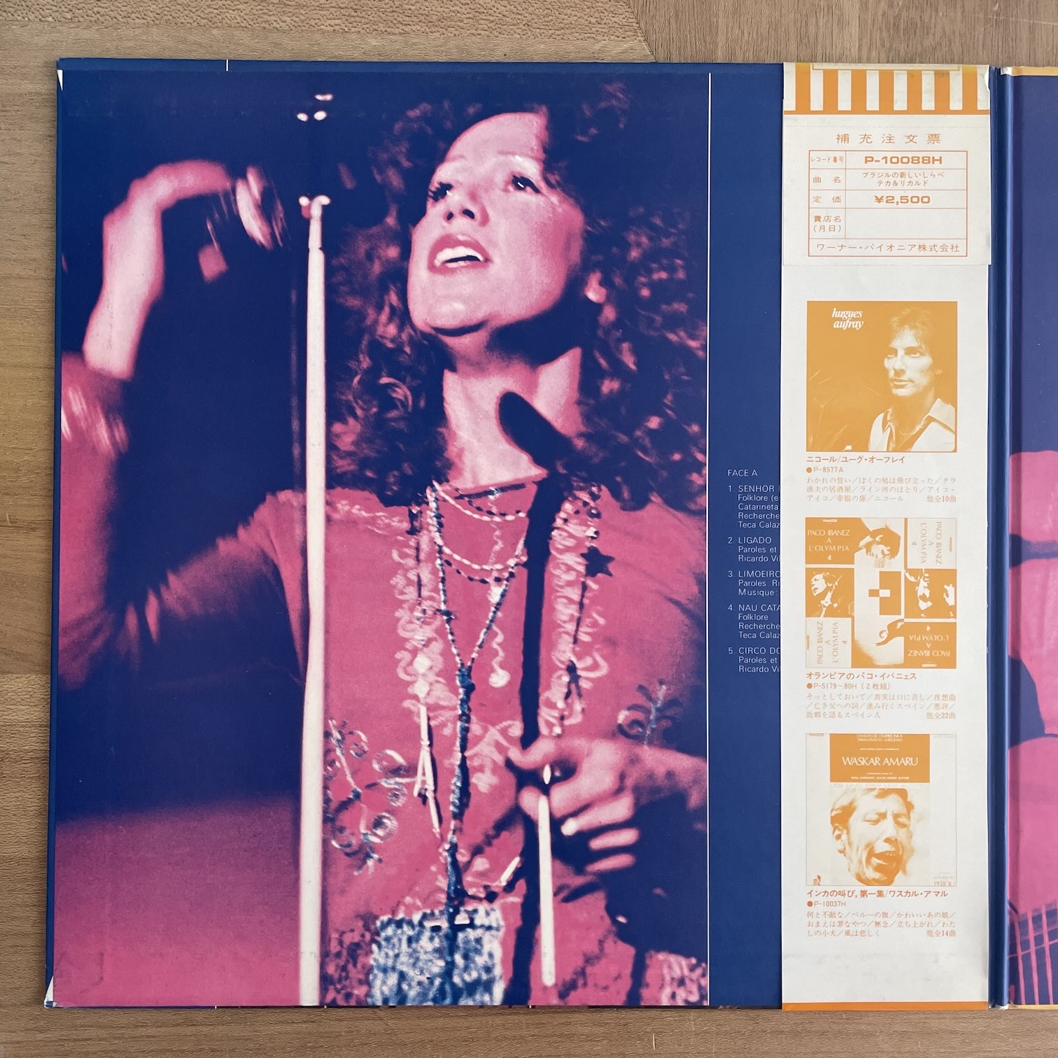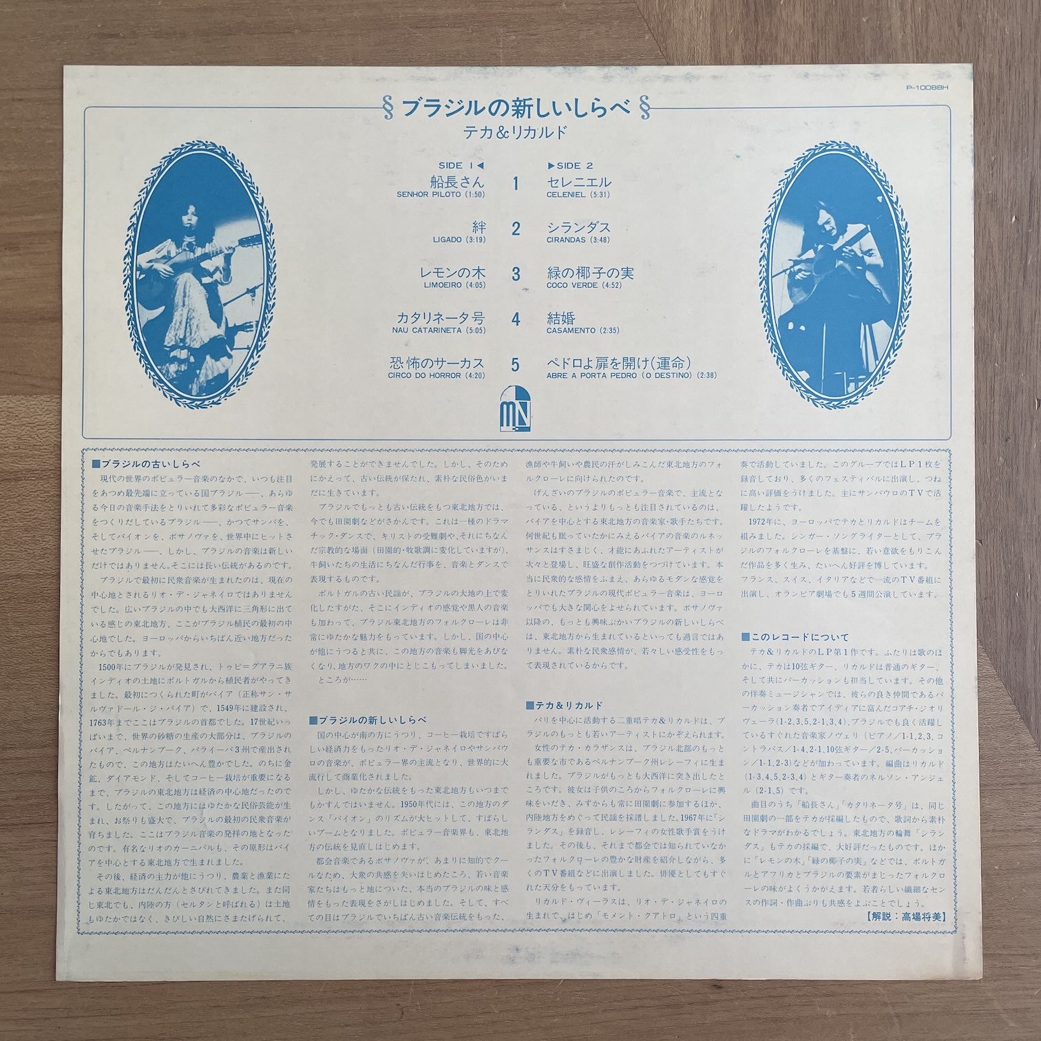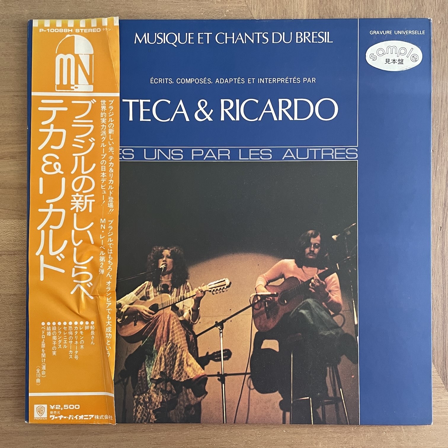 TECA & RICARDO / MUSIQUE ET CHANTS DU BRESIL TECA & RICARDO / MUSIQUE ET CHANTS DU BRESIL / P-10088H JP ORIG. PROMO. 75年moshe-naimからリリースされた日本・初回・見本盤。73年リリースの1stですが、日本では75年に初回リリースされたようです。男女デュオで2人ともブラジル人ですがパリを中心に活動していた、ブラジリアン・ミュージック。 盤質:A- ジャケット:表サンプルシール剥がれかけ、天縁・角・裏にスレ。帯天・底に破れ・シワあり・天縁色褪せ。ライナー汚れ。 試聴 LIGADO https://recordshopgg.com/wp-content/uploads/2026/03/TECA-RICARDO1.m4a CIRANDAS https://recordshopgg.com/wp-content/uploads/2026/03/TECA-RICARDO2.m4a (商品コード: 5701) 在庫状態 : 在庫有り ¥2,800(税込) 数量
