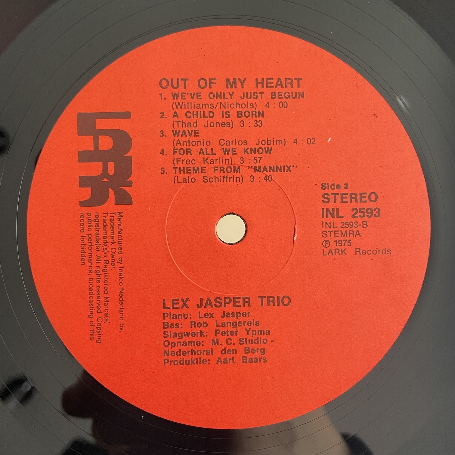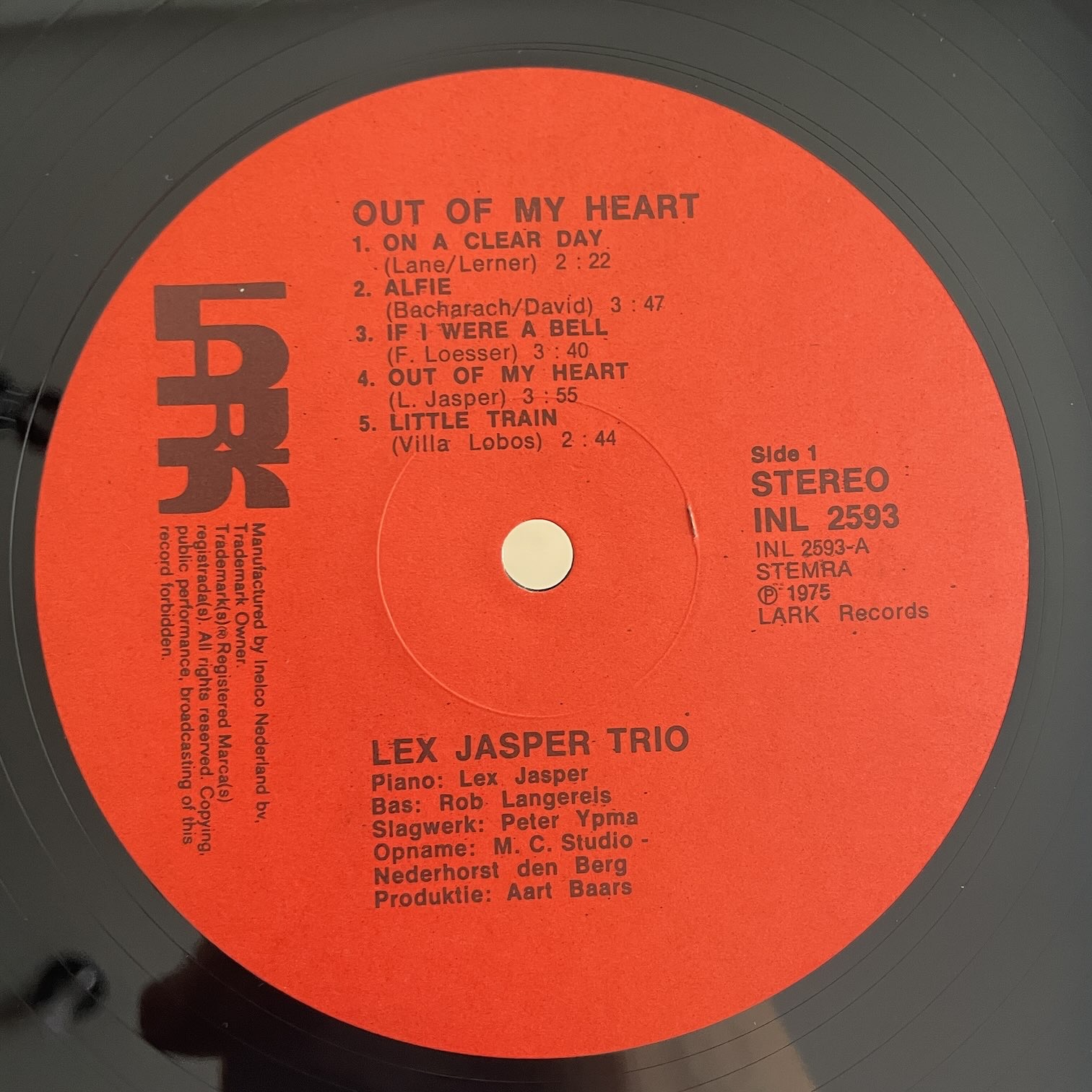 LEX JASPER TRIO / OUT OF MY HEART / INL2593 NETHERLANDS ORIG.