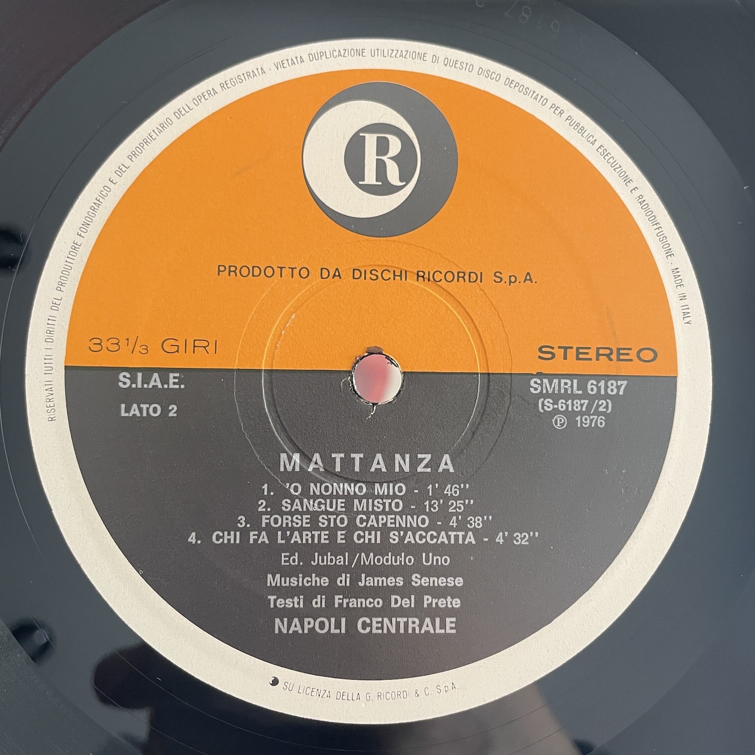 NAPOLI CENTRALE / MATTANZA NAPOLI CENTRALE / MATTANZA / SMRL6187 ITALY ORIG. 76年ricordiからリリースされたイタリア・オリジナル。イタリアのジャズ・ロック〜ジャズ・ファンク・バンドの2nd。冒頭の「SIMME IUTE E SIMME VENUTE」の入りが地中海民謡な音楽でびっくりしましたが、そこからの変調はさらにびっくり! 盤質:A- ジャケット:表3箇所小傷、4cm底抜け、角潰れ。 試聴 SIMME IUTE E SIMME VENUTE https://recordshopgg.com/wp-content/uploads/2026/04/NAPOLI-CENTRALE1.m4a SOTTO A’ SUTTANA https://recordshopgg.com/wp-content/uploads/2026/04/NAPOLI-CENTRALE2.m4a (商品コード: 5925) 在庫状態 : 在庫有り ¥7,800(税込) 数量