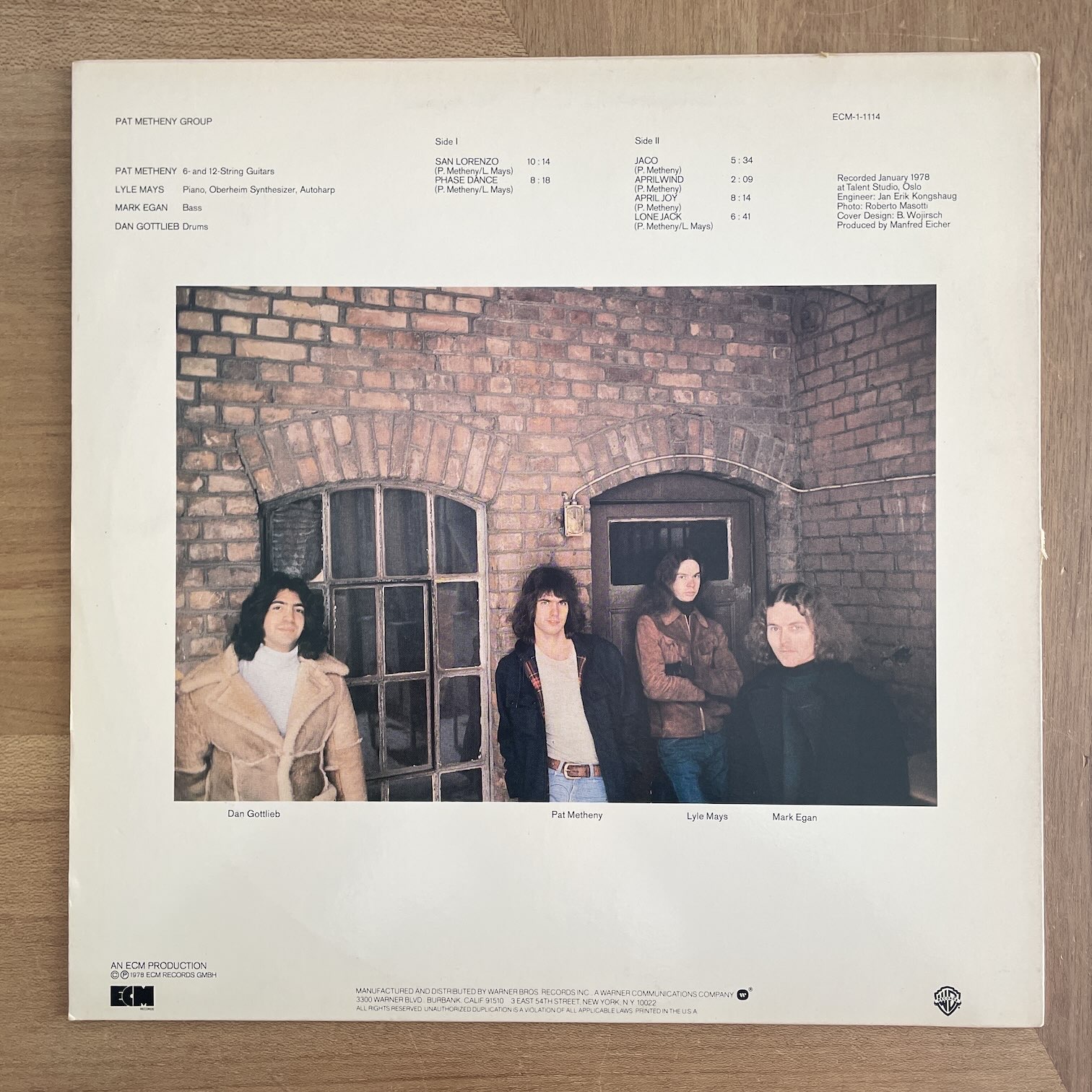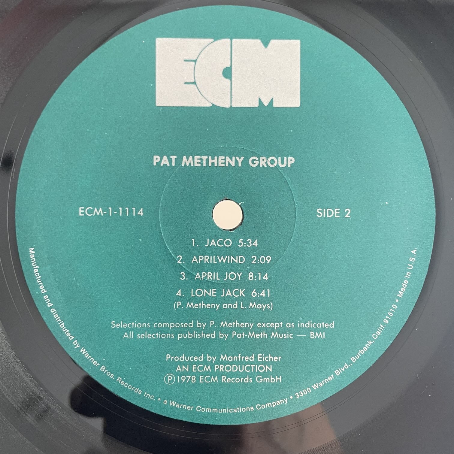 PAT METHENY GROUP PAT METHENY GROUP / ECM-1-1114 US ORIG. 78年ecmからリリースされたアメリカ・オリジナル。LYLE MAYS,MARK EGAN,DAN GOTTLIEBとのカルテット編成で始まったパット・メセニー・グループの最初のアルバム。1stアルバムに流れる瑞々しさが気持ちいいアルバム。 盤質:B+(B-1冒頭に小傷ありプチ音入ります。他綺麗) ジャケット:縁黄ばみ、背一部剥がれ、軽度角潰れ。 試聴 PHASE DANCE https://recordshopgg.com/wp-content/uploads/2026/04/PAT-METHENY-1.m4a JACO (B-1傷部分) https://recordshopgg.com/wp-content/uploads/2026/04/PAT-METHENY-GROUP-.m4a (商品コード: 5929) 在庫状態 : 在庫有り ¥2,300(税込) 数量