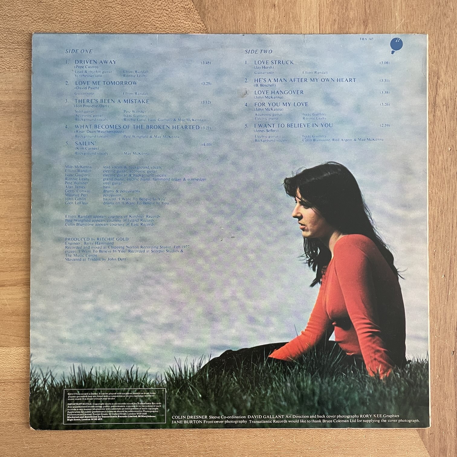 77年transatlanticからリリースされたイギリス・オリジナル。コントラバンドのボーカリストによるソロ・3作目。UKフォーク・ロックやアメリカのフィーメル・ボーカル・ファンにもおすすめで、KIM CARNESの「SAILIN’」などもカヴァーしてます。しかし、両面ともにジャケットが素晴らしい。ラビリンス6071掲載。