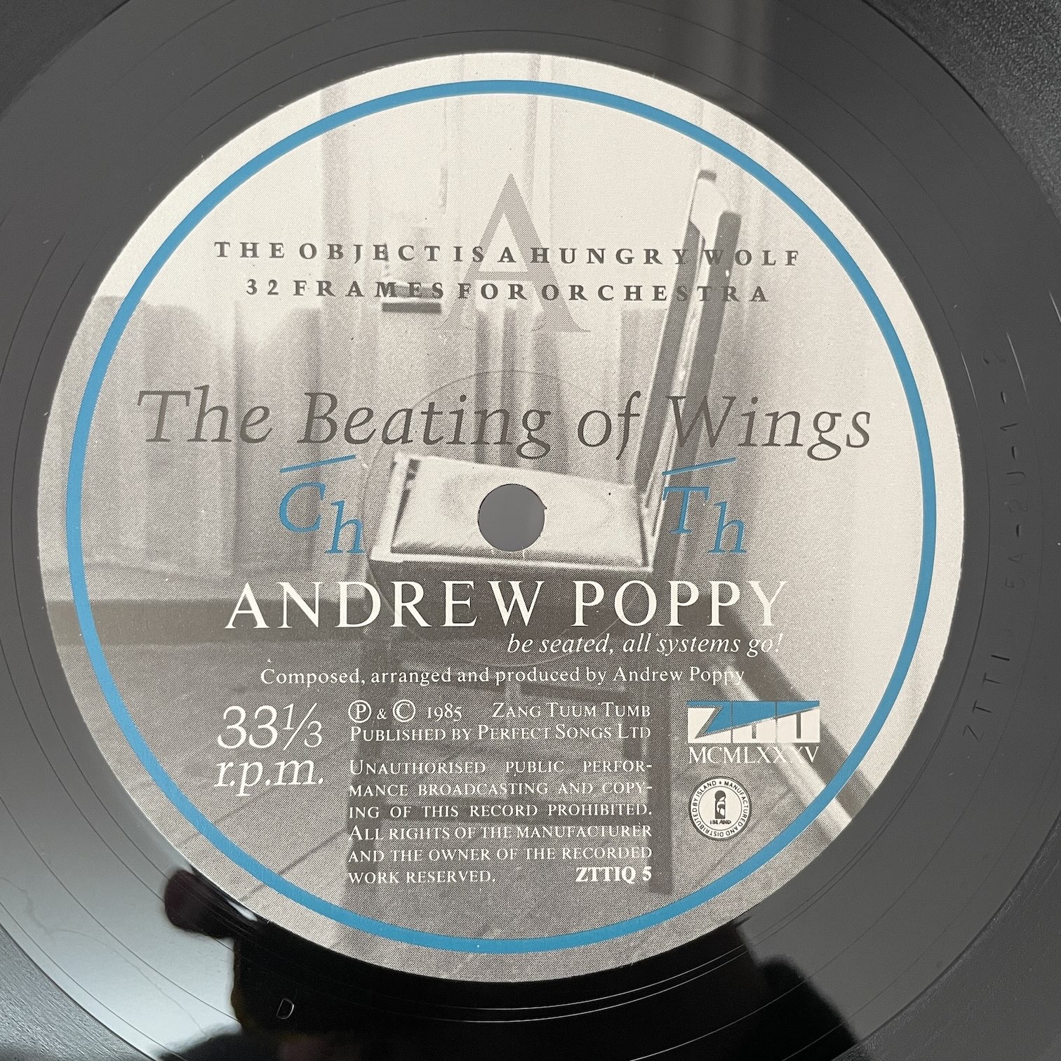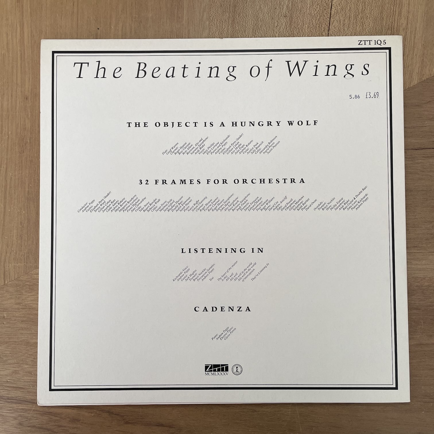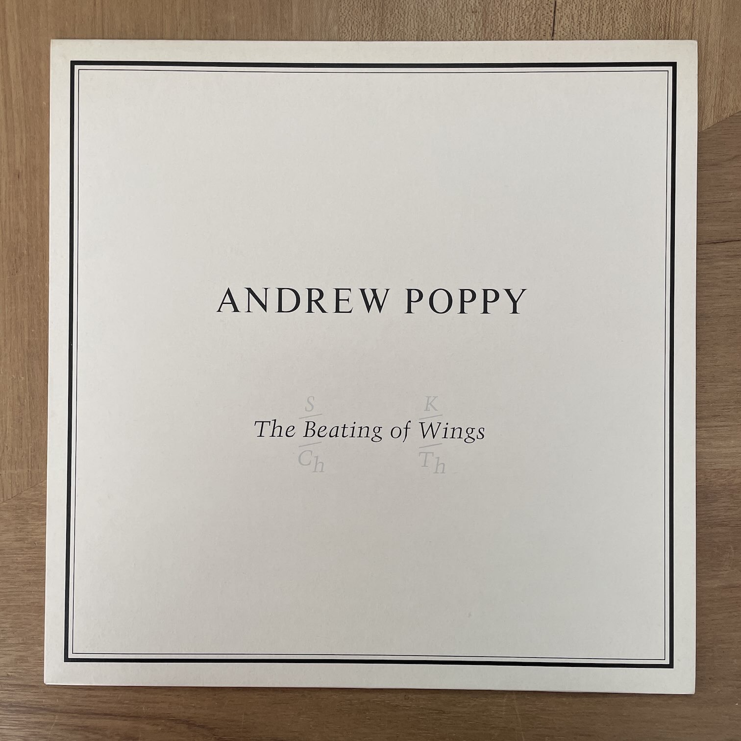 ANDREW POPPY / THE BEATING OF WINGS ANDREW POPPY / THE BEATING OF WINGS / ZTT1Q5 UK ORIG. 85年zttからリリースされたイギリス・オリジナル。イギリスのピアニストによるソロ・1st。エレクトロだったり30人以上の演者を使ったり、両方がうまく組み合わさったミニマル・ミュージック。4曲のラスト「CADENZA」はピアノとエレピ奏者の2人での楽曲。 盤質:B+ ジャケット:両面少ししみ、裏プライスシール。インナースリーブあり。 試聴 THE OBJECT IS A HUNGRY WOLF https://recordshopgg.com/wp-content/uploads/2026/04/ANDREW-POPPY1.m4a 32 FRAMES FOR ORCHESTRA https://recordshopgg.com/wp-content/uploads/2026/04/ANDREW-POPPY2.m4a (商品コード: 5961) 在庫状態 : 在庫有り ¥2,300(税込) 数量