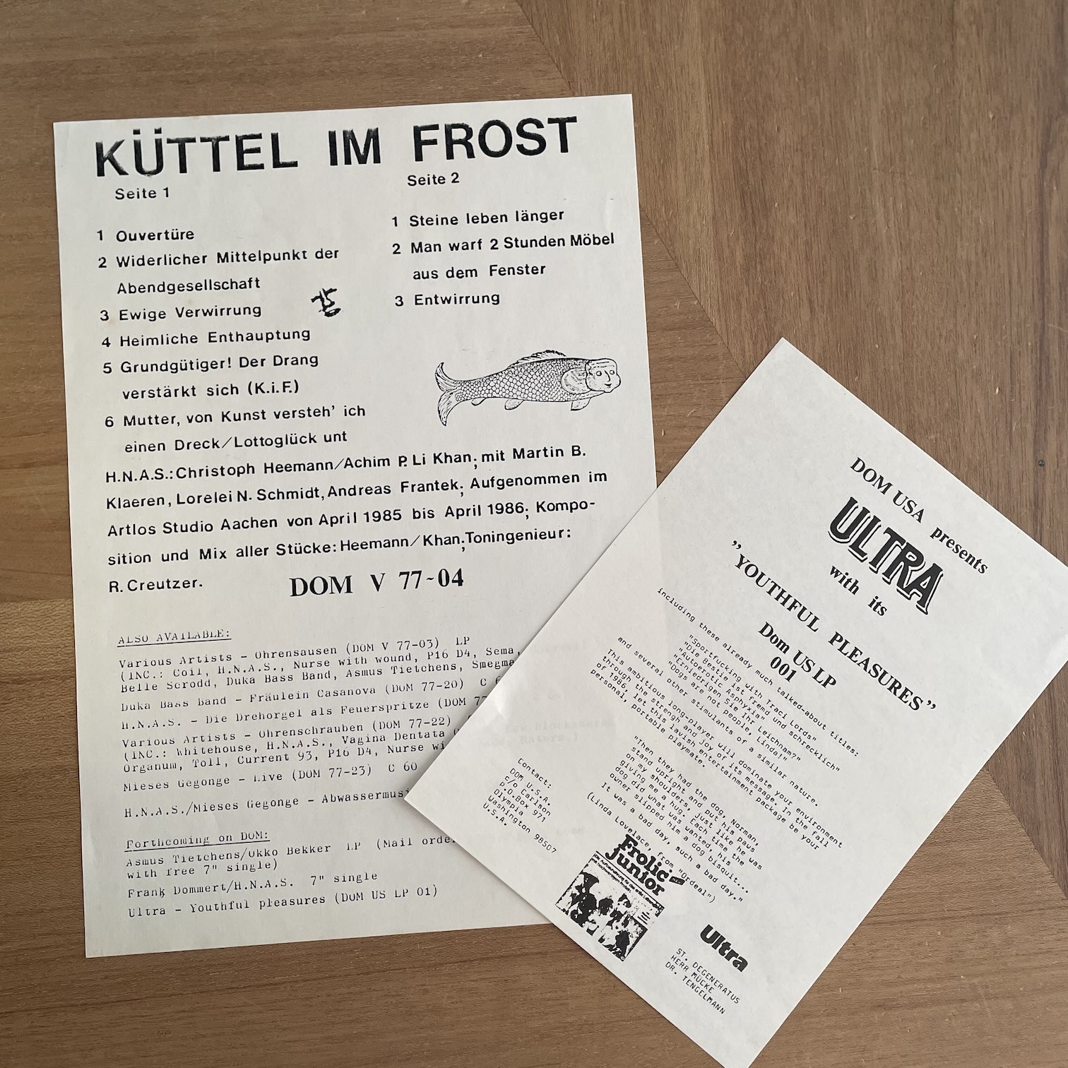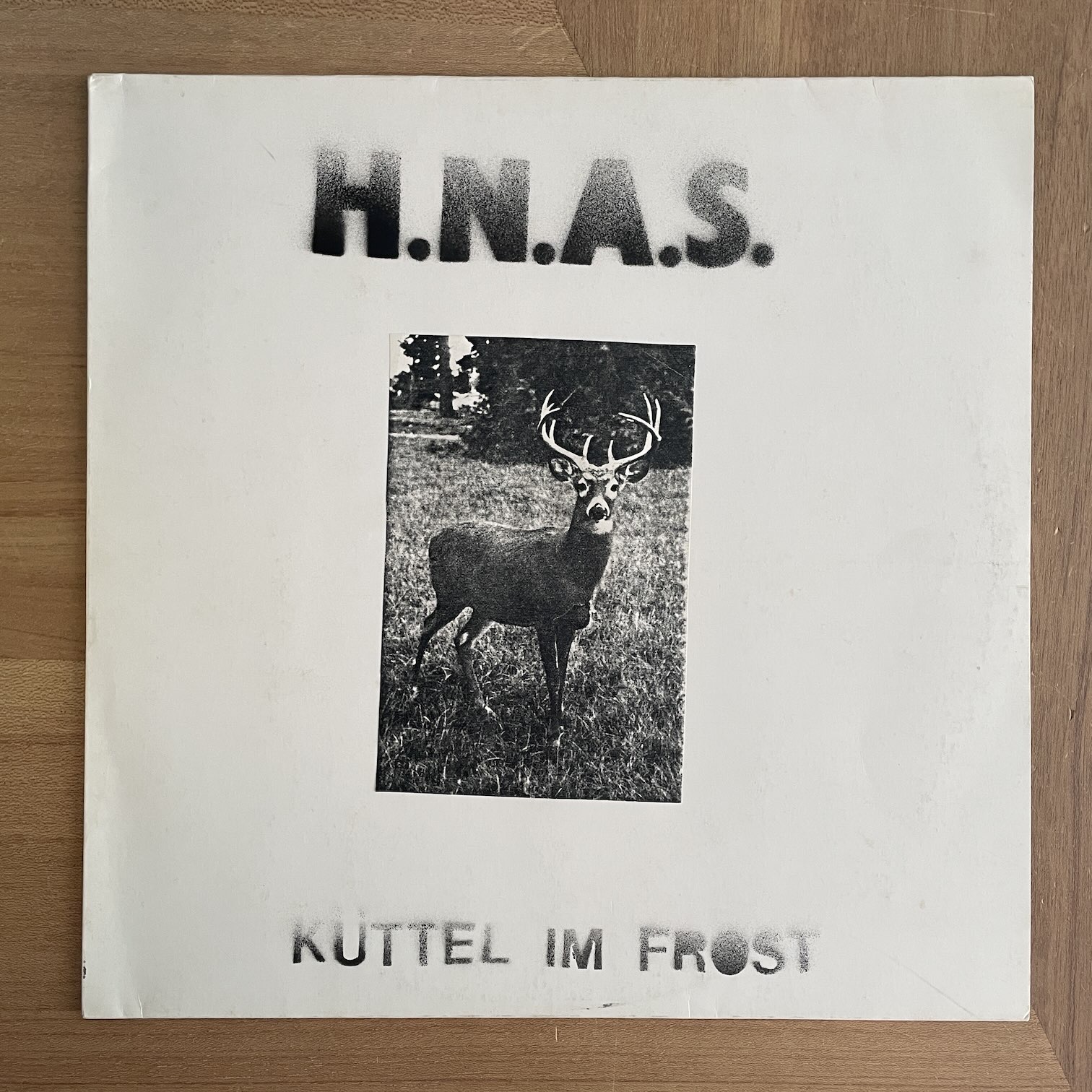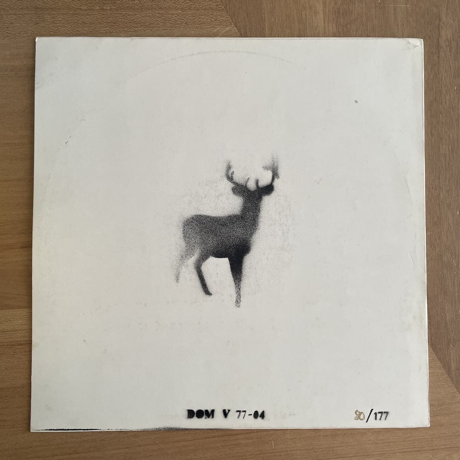86年インディレーベルDOMからリリースされたドイツ・オリジナル。2ndプレスのこの作品は177枚作られて、一枚一枚ジャケットに貼り付けるシートが違うもので裏のスプレーされた鹿も数パターンあるようで、ナンバリングも手書きという凝りよう。内容はクラウトロックを経由したドイツの実験音楽のような感じです。