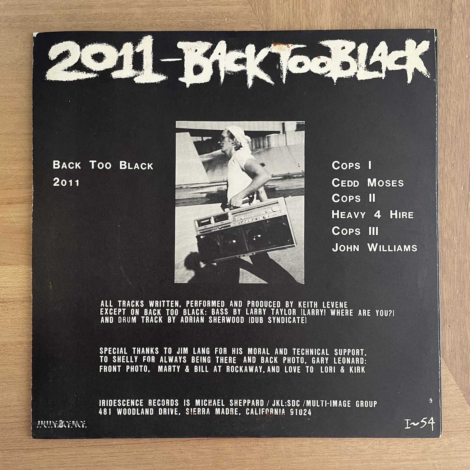 KEITH LEVENE / 2011 – BACK TOO BLACK KEITH LEVENE / 2011 - BACK TOO BLACK / I-54 US ORIG. 12INC. 白盤 87年Iridescence Recordsからリリースされたアメリカ・オリジナル・白盤・12インチ。THE CLASHやP.I.L.の初期メンバーであるキース・レヴィンの1stシングル?ミニアルバム?実験的なダーク・ダブ〜ポスト・パンク作品。 盤質:A- ジャケット:エンボス加工ジャケ、両面しみ。 試聴 BACK TOO BLACK https://recordshopgg.com/wp-content/uploads/2026/04/KEITH-LEVENE1.m4a 2011 https://recordshopgg.com/wp-content/uploads/2026/04/KEITH-LEVENE2.m4a (商品コード: 5959) 在庫状態 : 在庫有り ¥2,300(税込) 数量