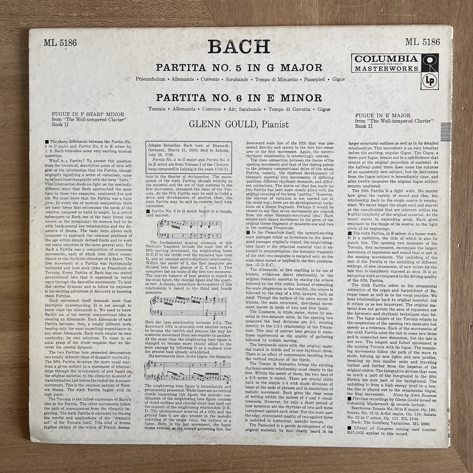 GLENN GOULD / BACH PARTITA NO.5, NO6 / ML5186 US MONO 6EYE