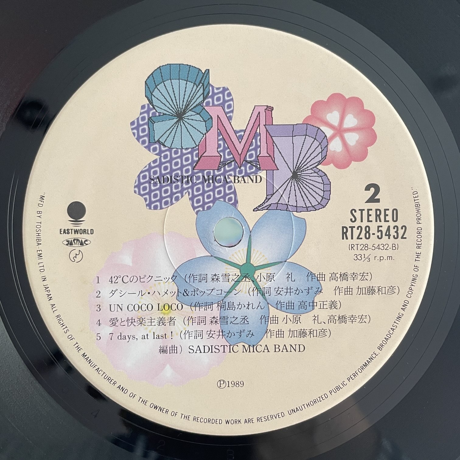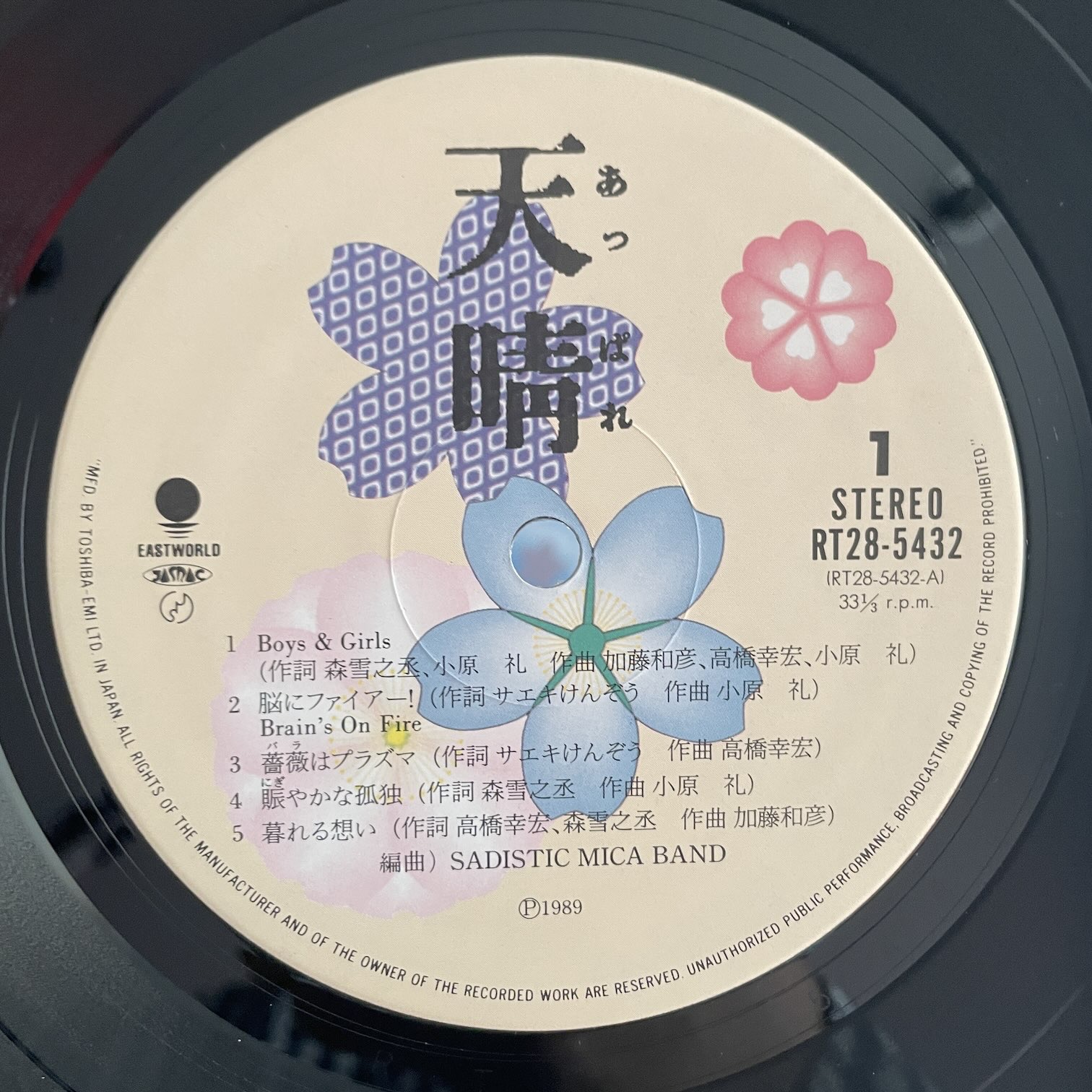 サディスティック・ミカ・バンド / SADISTIC MICA BAND / 天晴 サディスティック・ミカ・バンド / SADISTIC MICA BAND / 天晴 / RT28-5432 JP ORIG. 89年eastworldからリリースされた日本・オリジナル。ボーカルに桐島かれんを迎えての13年ぶりとなるミカ・バンド名義でのリリース。加藤和彦、小原礼、高中正義、高橋幸宏のメンバーはもちろん、ゲストも豪華で坂本龍一、忌野清志郎などが参加してます。CD移行期でレコードは希少です。 盤質:A- ジャケット:両面しみ、縁軽度スレ。帯なし、歌詞カードあり。 試聴 暮れる想い https://recordshopgg.com/wp-content/uploads/2026/04/サディスティック1.m4a ダシール・ハメット&ポップコーン https://recordshopgg.com/wp-content/uploads/2026/04/サディスティック2.m4a (商品コード: 5969) 在庫状態 : 在庫有り ¥5,800(税込) 数量